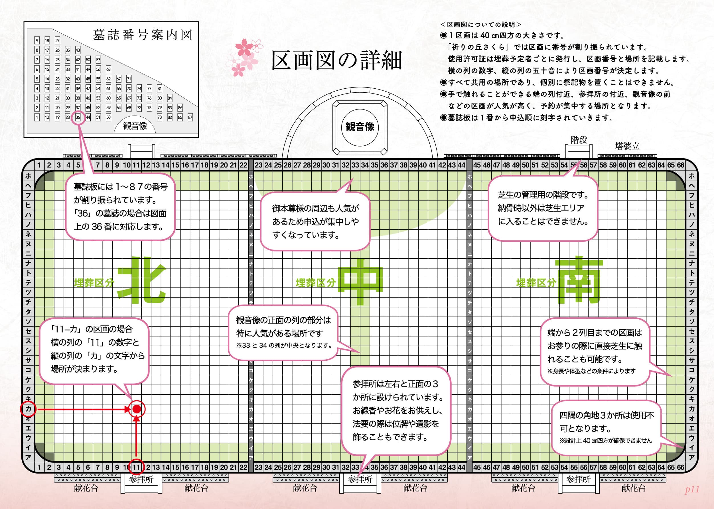 「祈りの丘さくら」の現在の申し込み状況は下記の通りです。お線香を供える参拝所周辺、手で触れることができる区画、観音像周辺など、申し込みがいくつかのエリアに集中しています。更新の時期により若干の差が出てしまう場合がございます。現況優先といたします。
