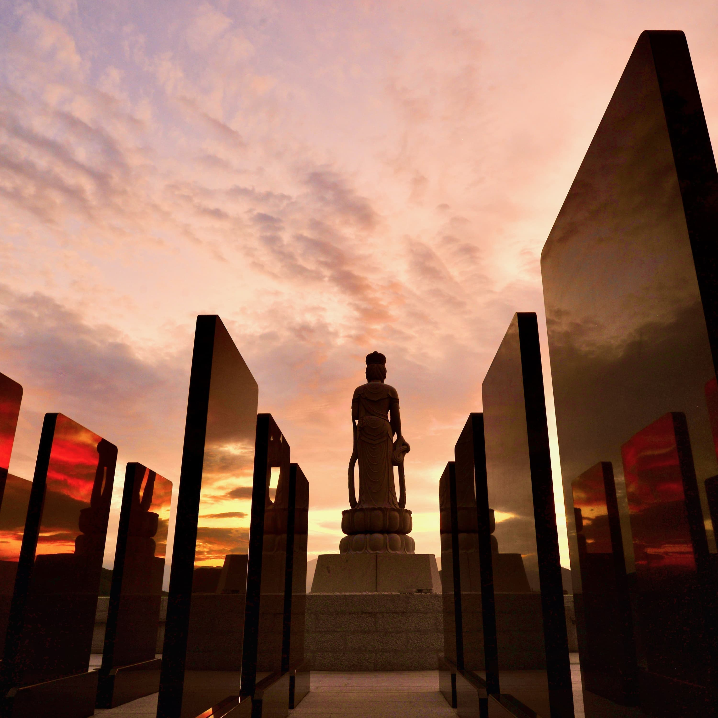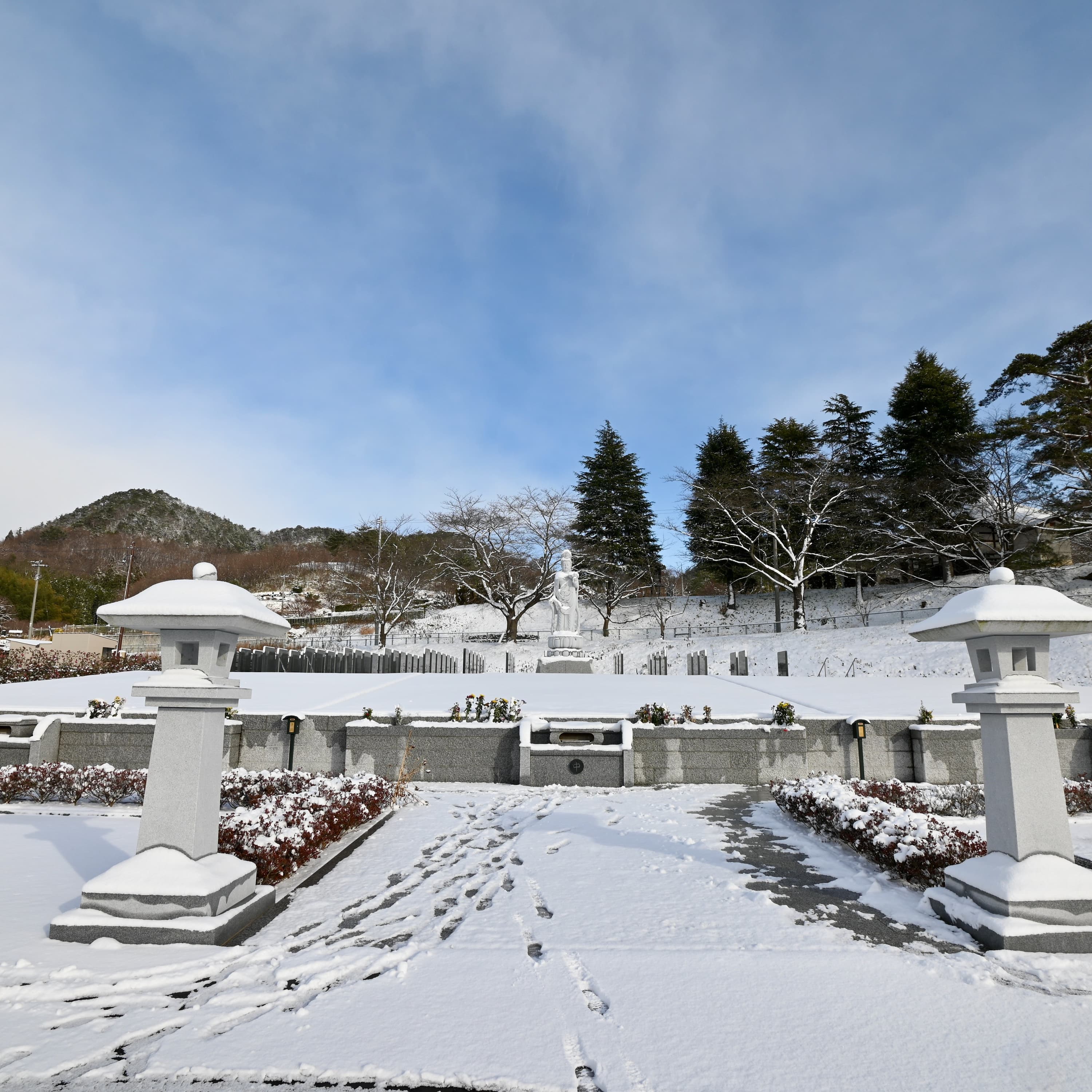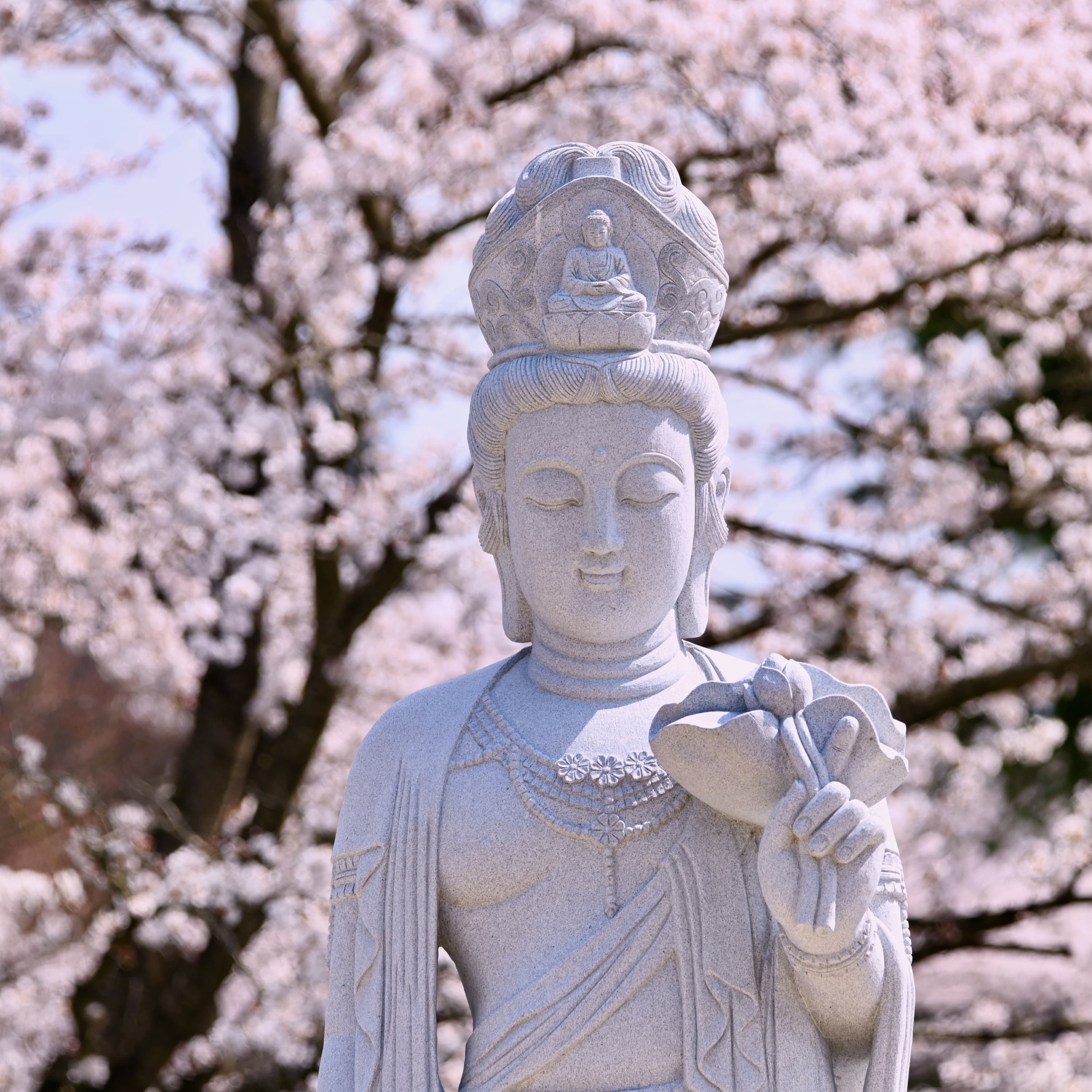 福島盆地を一望する安洞院・しのぶ霊園境内に、新しいお墓ができました。安洞院の山門付近の見事な桜並木を背に、青々とした芝生が敷き詰められた、墓標を個別に立てない自然葬形式の永代供養墓地です。朝陽を背に浴びる観音菩薩像の望む先には美しい福島盆地の山の稜線と福島市のシンボル信夫山。豊かな自然に囲まれた、完全バリアフリーの明るい霊苑です。多くのみなさまとご縁が結ばれることを念じております。